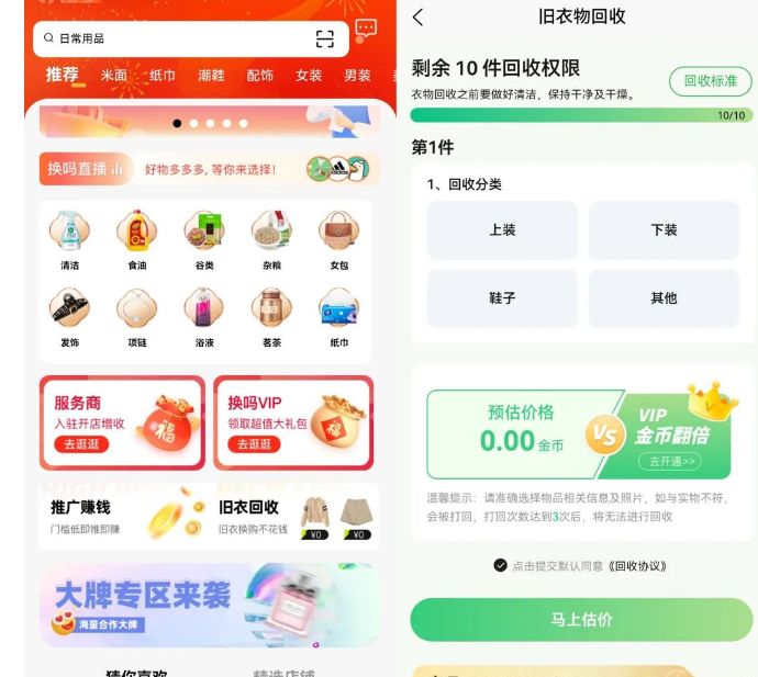 在旧衣服平台上传,审核通过以后就可以拿到门店回收,还会得到对应的金币,所有回收的旧衣服、旧鞋子只能兑换成金币,金币是不可以提现,可以在商城里面兑换商品,这些商品都是日常生活用品,兑换以后很容易出手变现,相当于是现金。