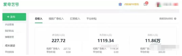 牛一点的也能做到日入1000+,当然这可能只是因为那天他的作品上了大热门,可以看一下300万的播放,收益1200,1万播放相当于4块钱,不算很高,但是爱奇艺的原创需求不是很高,随便剪辑一下就是原创。