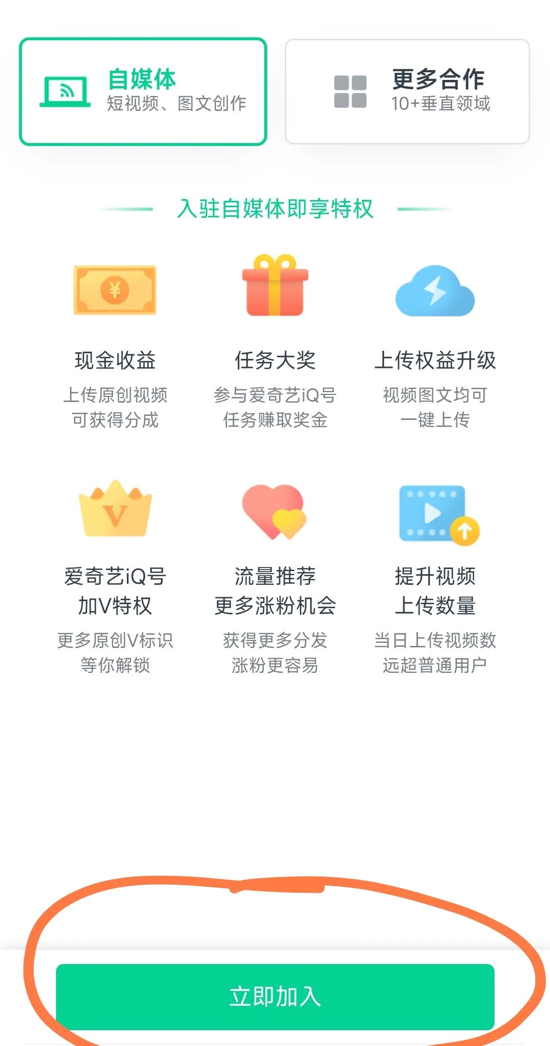 然后点击诚邀入驻,选择自媒体,短视频图文创作。
