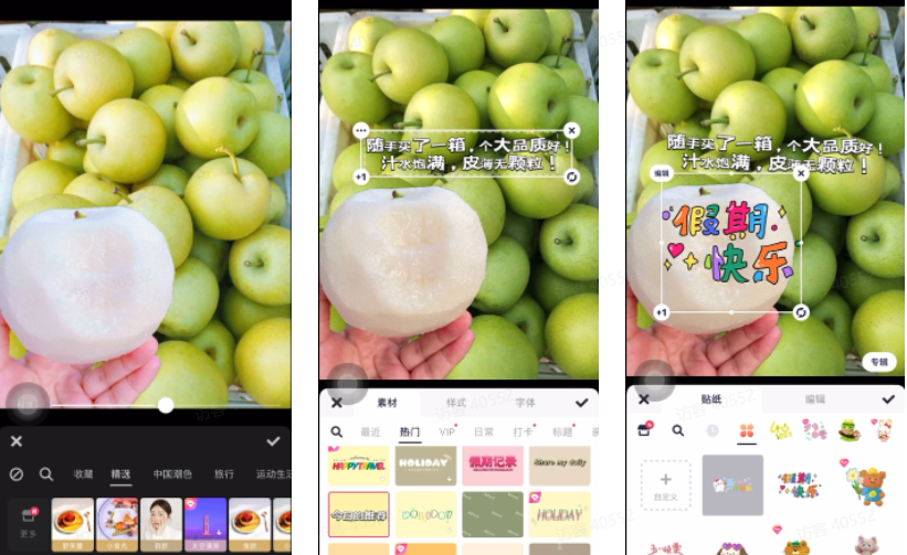 其余图片要多角度展示产品外观、特点。可以借助醒图、黄油相机这类工具进行图片的优化,或者是套用模板。