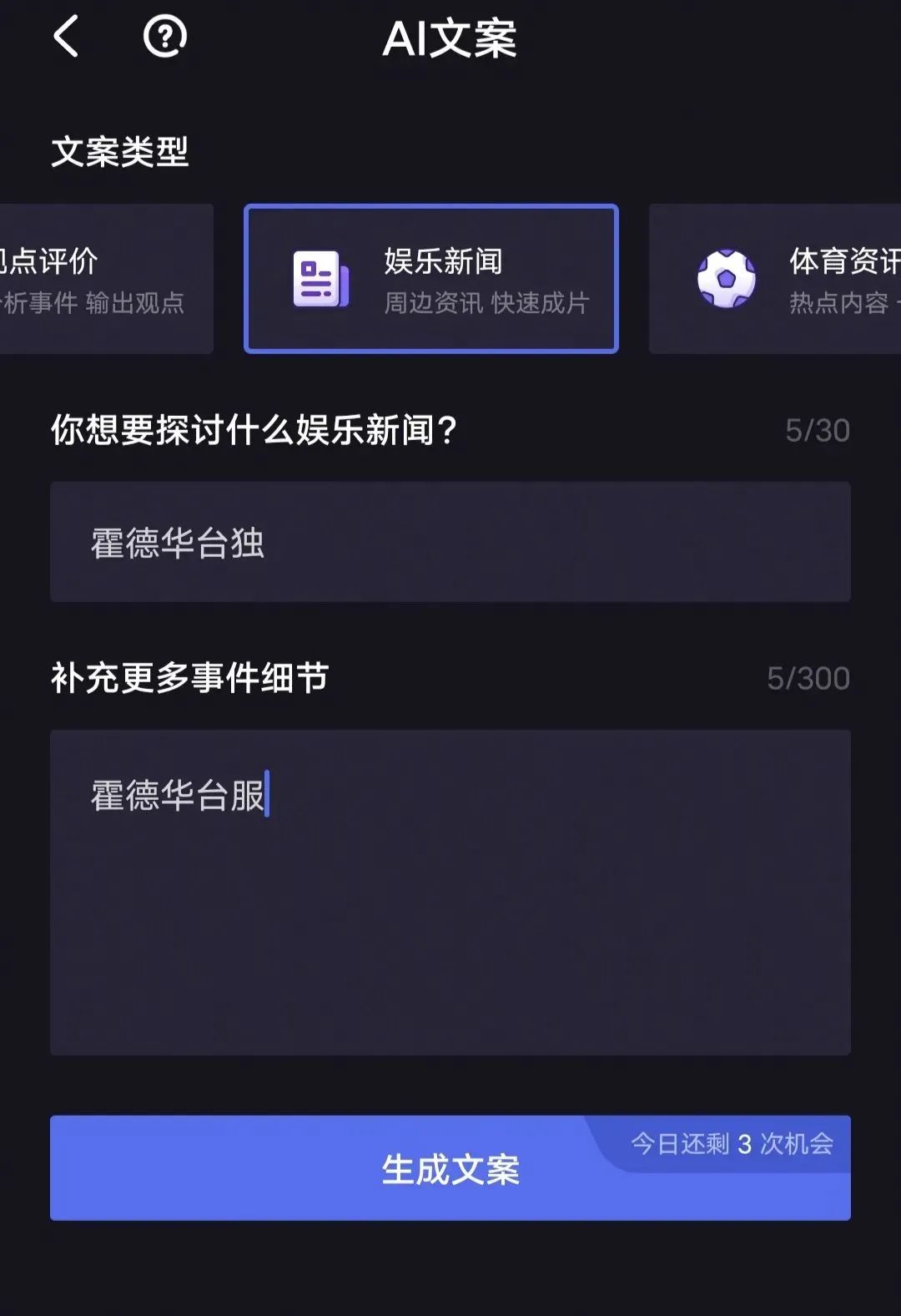 这个项目建议选择娱乐新闻领域,因为热点比较多,AI软件生成的视频会匹配到很精准的素材,会增加你视频的吸引力