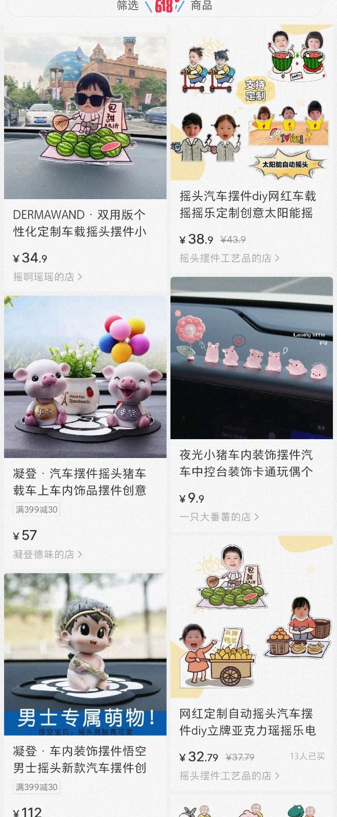 然而,正是基于年轻女孩子的这种兴趣,通过在小红书平台上销售定制的摇头娃娃车饰,是一个非常好的商机。