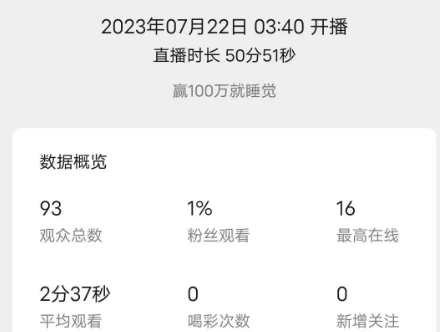 我自己进行了一下测试,直播数据并不是特别好,不知道有没有人进行下载,因为这个数据要两三天才会更新一次。基于100个观看次数,我估计可能会有两三个人进行下载,当然也有可能一个都没有。