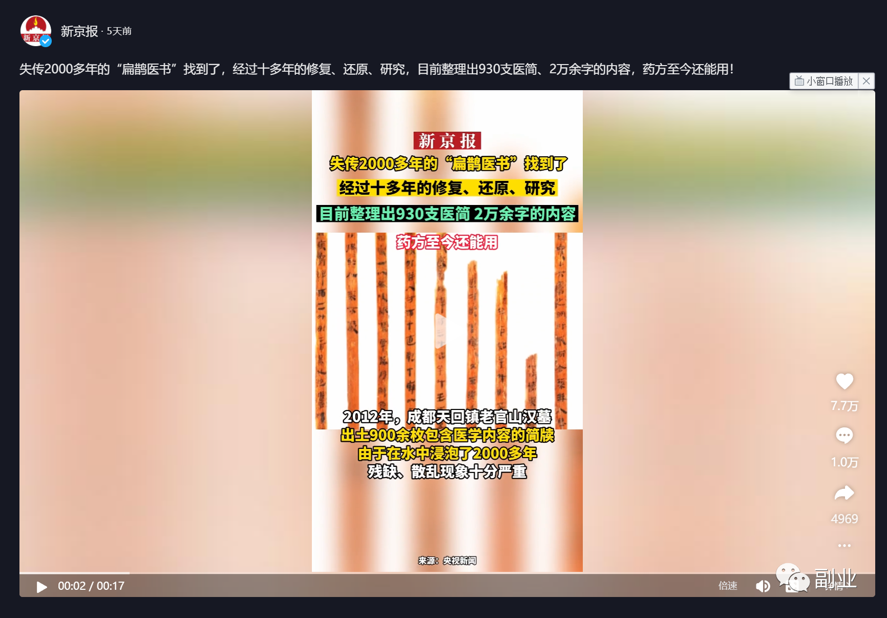 前两天特别关注这个新闻,失传2000多年的“扁鹊医书”找到,并且还经过修复还原! 关注度真的不低,很多古籍老书的价值,是真的大,不光是文化价值、研究价值,还有传承价值! 正式这些价值,造就不少需求,很多人对这个古籍老书的需求是真不小,收藏、研究、学习! 一个新闻打开了大家对古籍老书的认识,这两天,刷抖音时候,看到个账号专门直播卖这个古籍老书的! 你别说,这真的是一个图书板块小众又细分的领域,直接卖古籍电子书,存在不少机会!